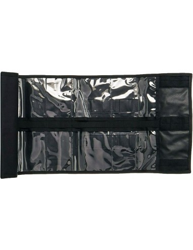 - Bolsillos internos de vinilo plisado para guardar suministros médicos.