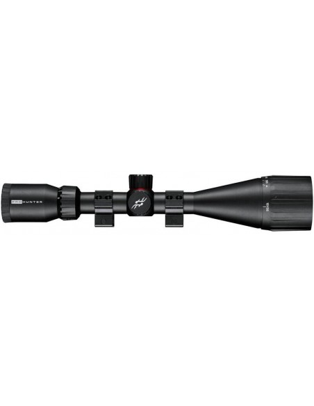 Los nuevos visores Simmons Pro Hunter ofrecen un sistema óptico totalmente de vidrio que proporciona imágenes nítidas en condiciones de poca luz con lentes completamente recubiertas y una construcción a prueba de agua, niebla y golpes, con certificación IPX7 que brinda tranquilidad en cualquier situación climatológica. Construido con un nuevo diseño agresivo y resistente, que incluye una ruleta de aumentos texturizada y torretas de corrección de elevación y deriva ajustables con los dedos. Los visores Pro Hunter cuentan con un tubo principal de aluminio de una sola pieza de una pulgada y vienen con una retícula Simmons Truplex simple y fácil de usar. Todos los visores Simmons Pro Hunter vienen listos para usar desde el primer momento incluyendo anillas estilo Weaver para un montaje rápido sobre el arma.